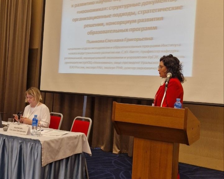 Светлана Пьянкова, вице-президент УрО ВЭО России, профессор кафедры региональной, муниципальной экономики и управления УрГЭУ, начальник отдела методологии и образовательных программ ИНИР им. С.Ю. Витте, д.э.н. представила методологические аспекты корцорциума развития учебно-образовательных программ по курсу «Теория ноономика», раскрыла ключевые моменты хода реализации третьего Международного конкурса «Теория ноономики как ключ к исследованию социально-экономических трансформаций 21 века», проводимого в рамках Евразийского экономического форума молодежи, обосновала ключевые структурные и системные аспекты учебника автора «Фундаментальные основы теории ноономики», вышедшего в 2025 года. В дискуссионном формате между центрами ноономики рассмотрены стратегические шаги по консолидации усилий и выполнению поставленных организационных задач.